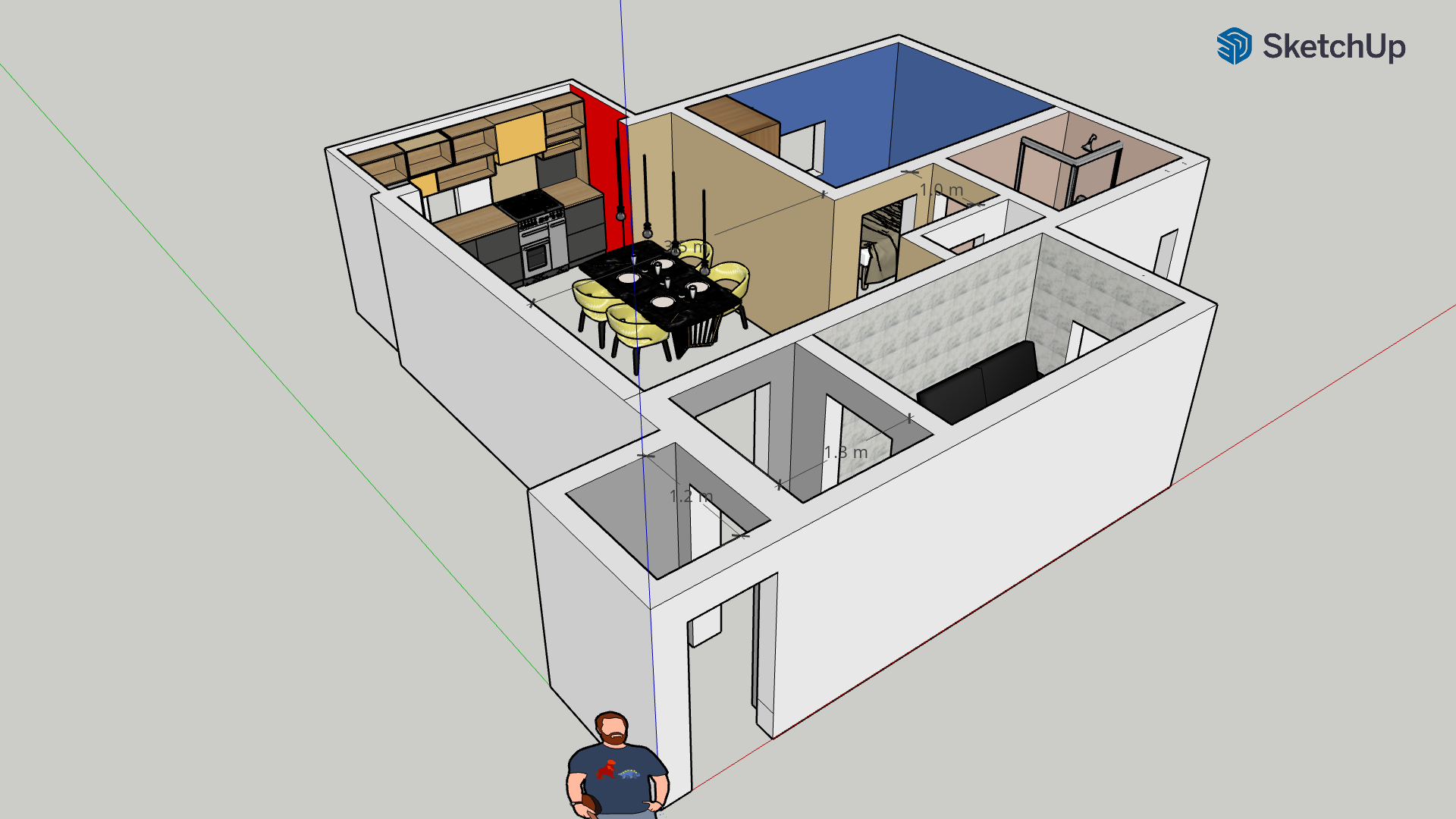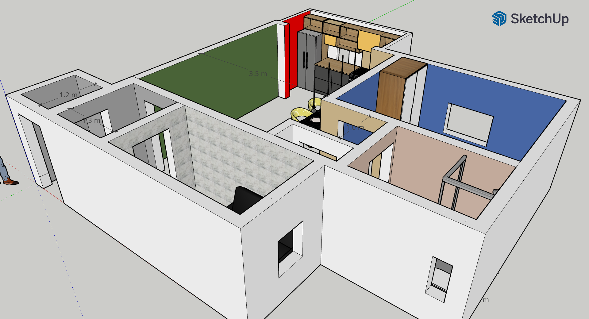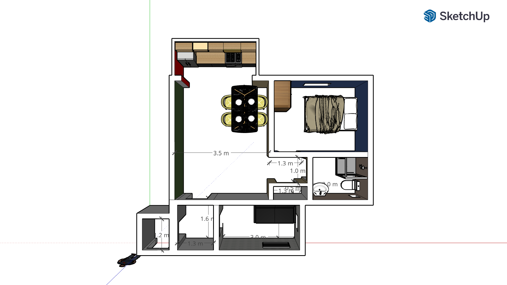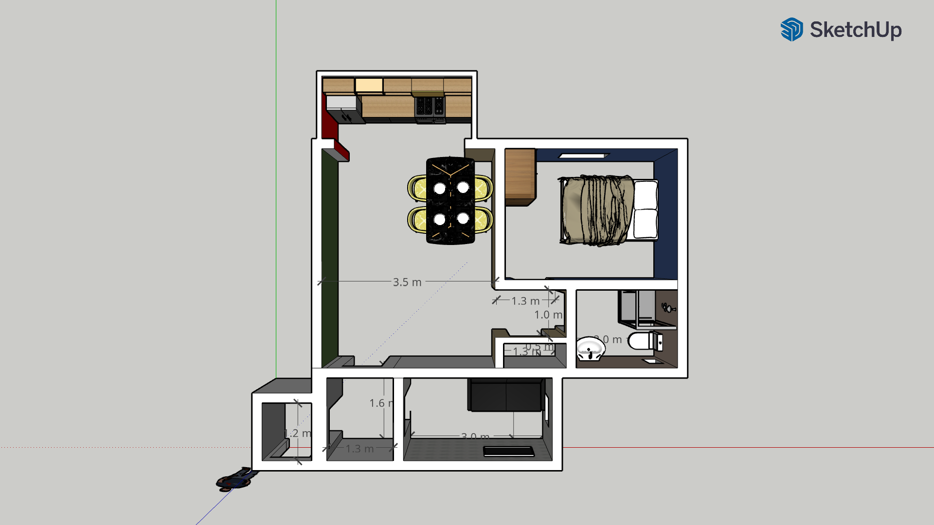 Single Bedroom Apartment Design Layout. [Sketch Up No Background]